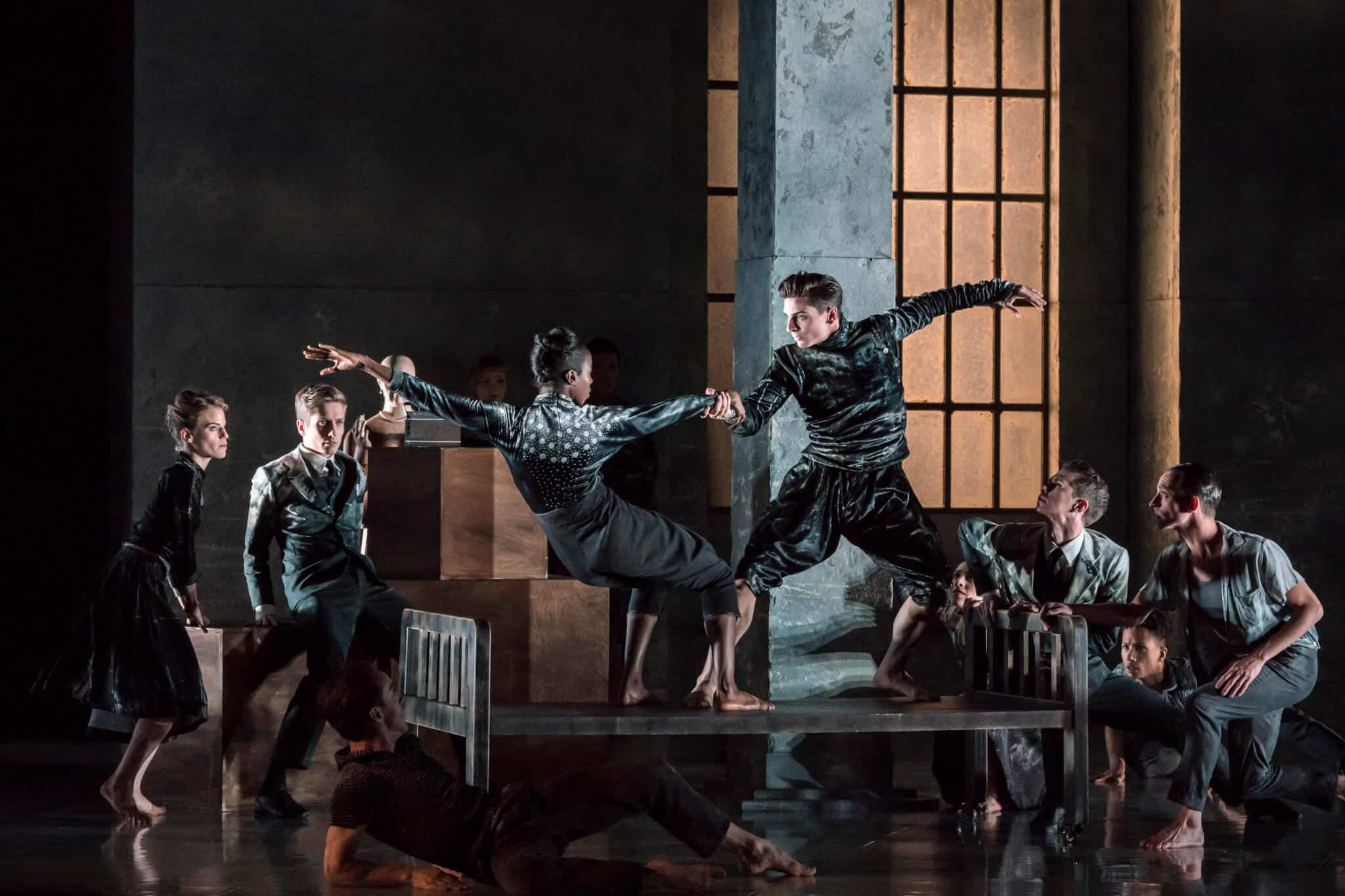 Harlequin Cascade and Harlequin Reversible are used on stage at Sadlers Wells. A bespoke painted silver Harlequin Hi-Shine vinyl floor was created for Rambert.