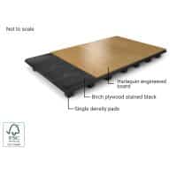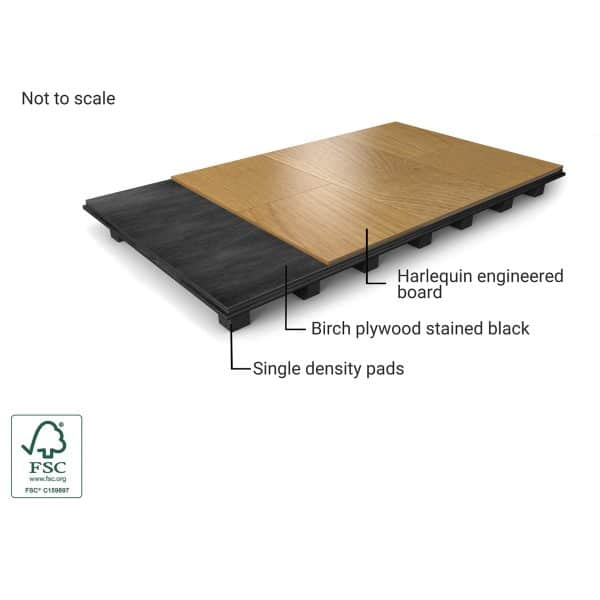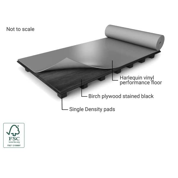 Harlequin Flexity is a self-install sprung floor system featuring stained birch plywood panels and shock-dampening single density elastomer pads.