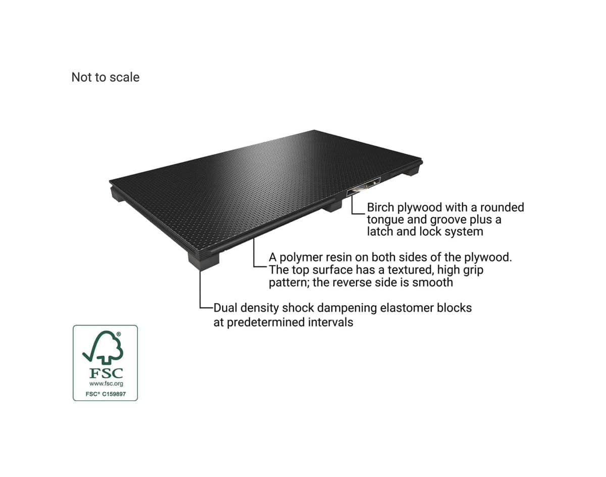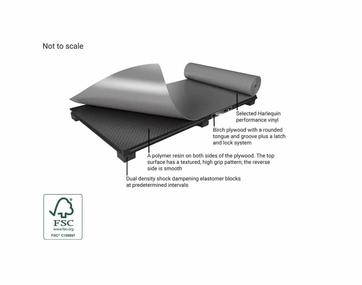 Harlequin Liberty HD地板兩側塗有黑色聚合物樹脂,表面有紋理,高抓地力,耐磨,防滑,防風雨。